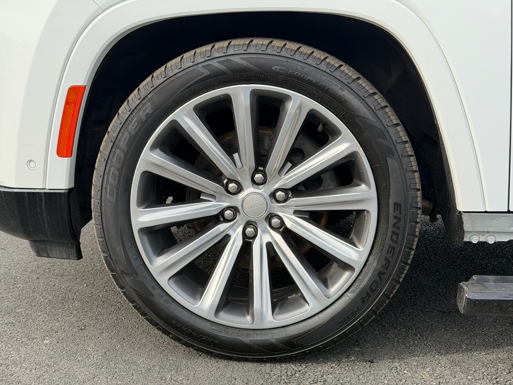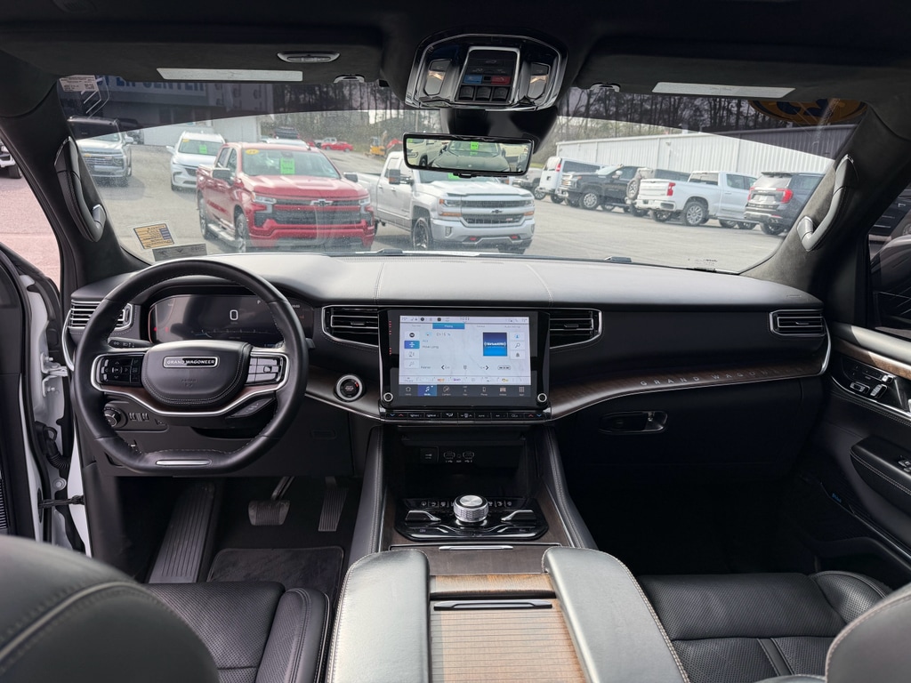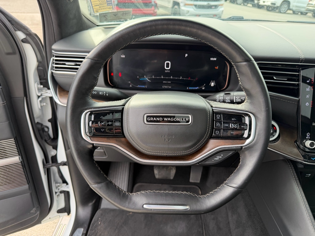 Apple CarPlay: Seamless smartphone integration for it - stay connected and entertained on the go! Never get into a cold vehicle again with the remote start feature on this Jeep Grand Wagoneer. This unit features a hands-free Bluetooth phone system. The installed navigation system will keep you on the right path. This 1/2 ton suv has auto-adjust speed for safe following. See what's behind you with the back up camera on this model. This 1/2 ton suv offers Android Auto for seamless smartphone integration. Keep your hands warm all winter with a heated steering wheel in this unit . This unit's Forward Collision Warning feature alerts drivers to potential front-end collisions. The leather seats in this unit are a must for buyers looking for comfort, durability, and style. This unit has four wheel drive capabilities. The vehicle has a 6 Cyl, 3.0L high output engine. Load groceries and much more with ease into the Jeep Grand Wagoneer thanks to the power liftgate.