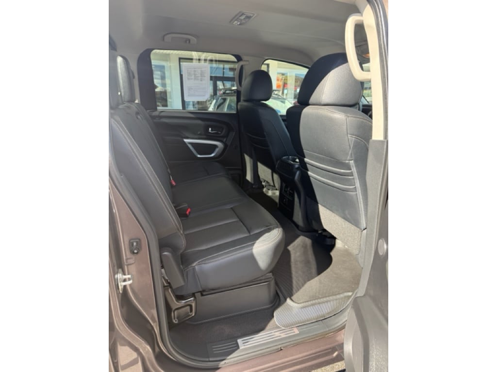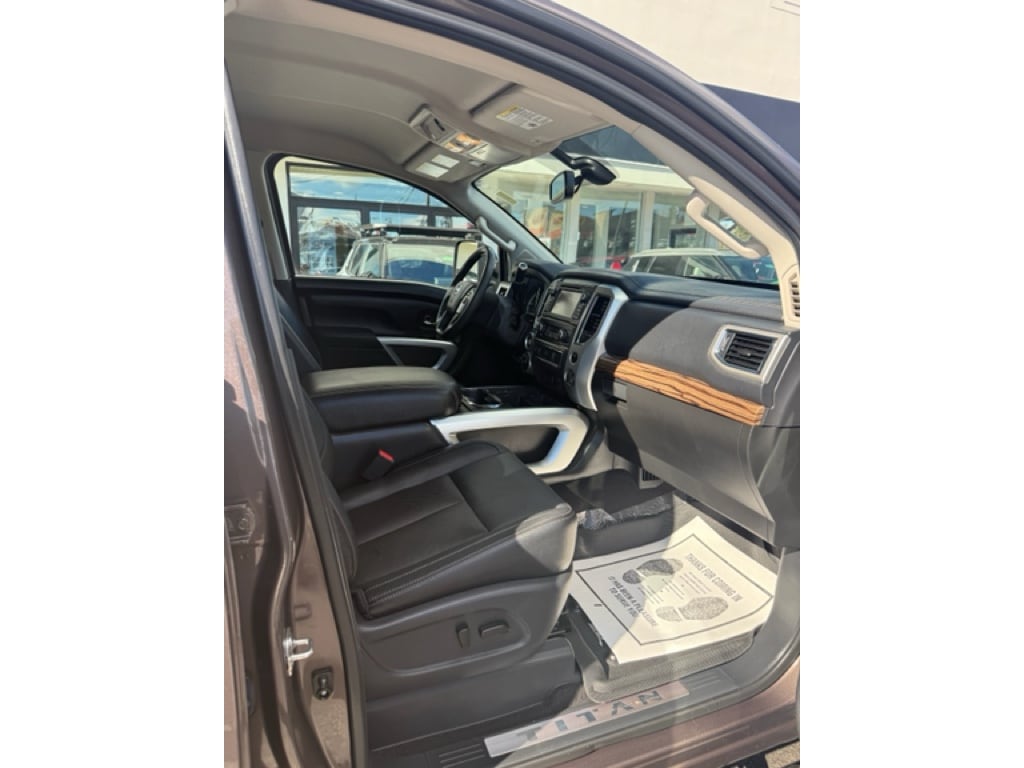 The leather seats in this Nissan Titan are a must for buyers looking for comfort, durability, and style. This vehicle features a hands-free Bluetooth phone system. You'll never again be lost in a crowded city or a country region with the navigation system on this 1/2 ton pickup. Never get into a cold vehicle again with the remote start feature on this unit. The state of the art park assist system will guide you easily into any spot. Protect this vehicle from unwanted accidents with a cutting edge backup camera system. This Nissan Titan is equipped with the latest generation of XM/Sirius Radio. This vehicle keeps you comfortable with Auto Climate. A trailer braking system is already installed on this 2018 Nissan Titan . The Nissan Titan has a V8, 5.6L high output engine. Set the temperature exactly where you are most comfortable in it. The fan speed and temperature will automatically adjust to maintain your preferred zone climate.